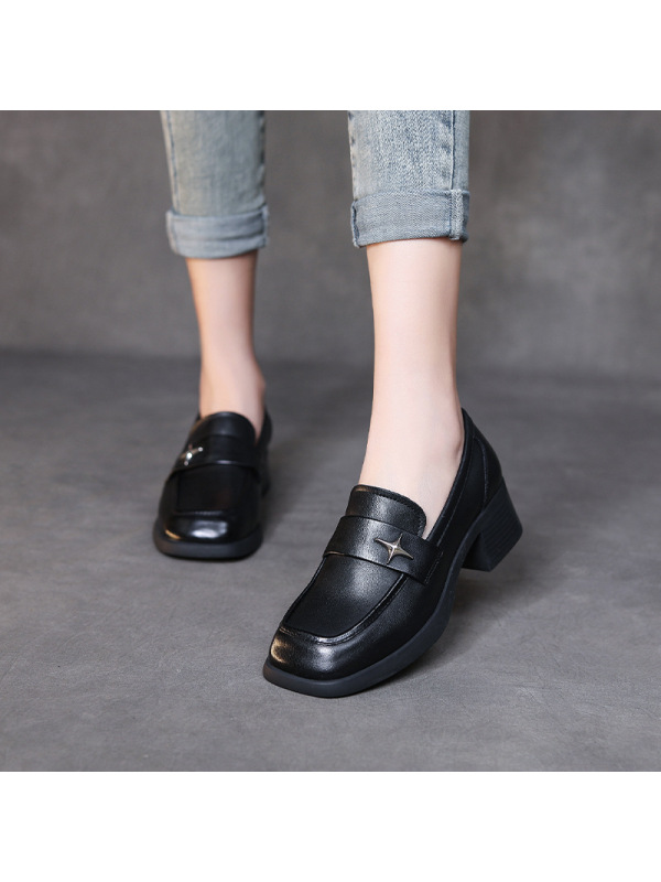 羊皮乐福鞋2024年新款真皮高跟单鞋女粗跟增高英伦风女士小皮鞋
