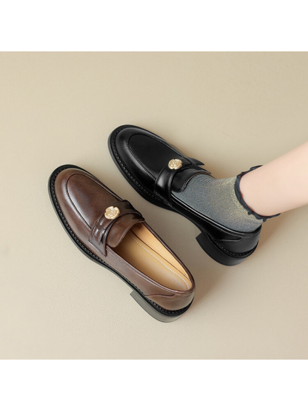 格瑞迪欧 南国牛皮女鞋春季新款女士单鞋英伦风一脚蹬小皮鞋女厚底粗跟通勤乐福鞋女9668