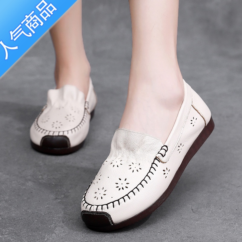 SUNTEK妈妈凉鞋女夏镂空鞋子单鞋软底洞洞鞋软皮舒适皮鞋中老年女鞋