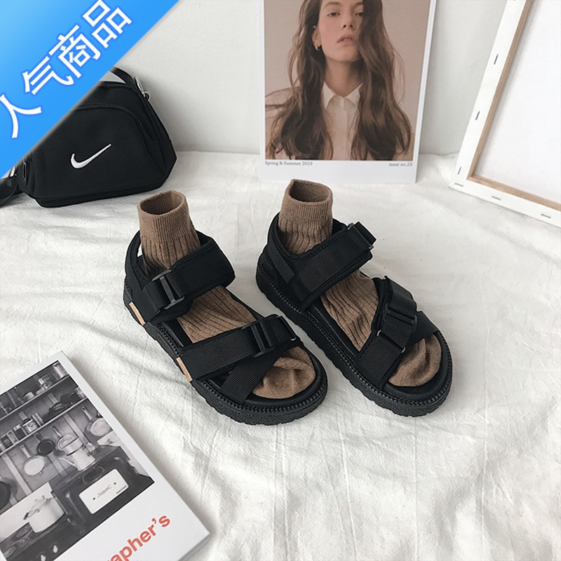 SUNTEK复古包头编织罗马凉鞋女夏天镂空ins百搭软平底猪笼鞋韩系沙滩鞋