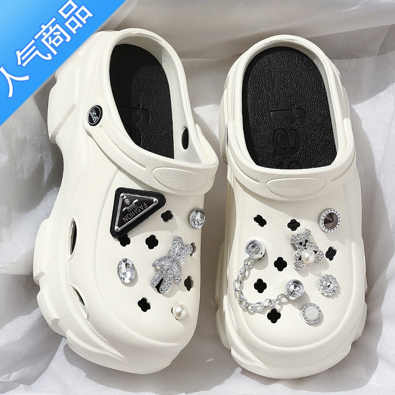 SUNTEK高跟洞洞鞋女款夏季外穿厚底增高防滑沙滩包头黑色凉鞋女