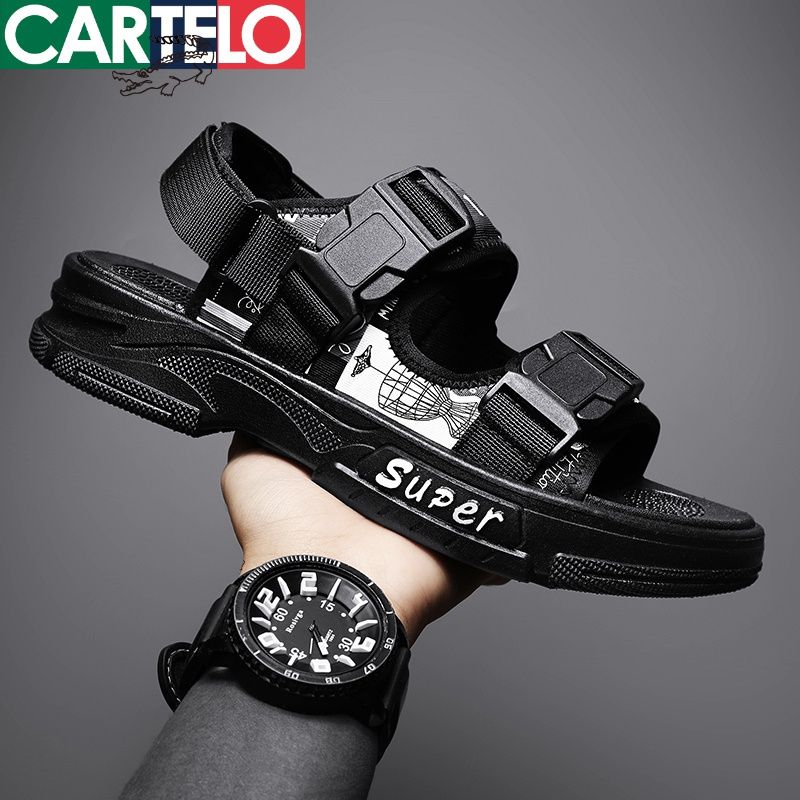卡帝乐鳄鱼(CARTELO)夏季新款男士沙滩鞋凉鞋男休闲运动凉拖鞋外穿