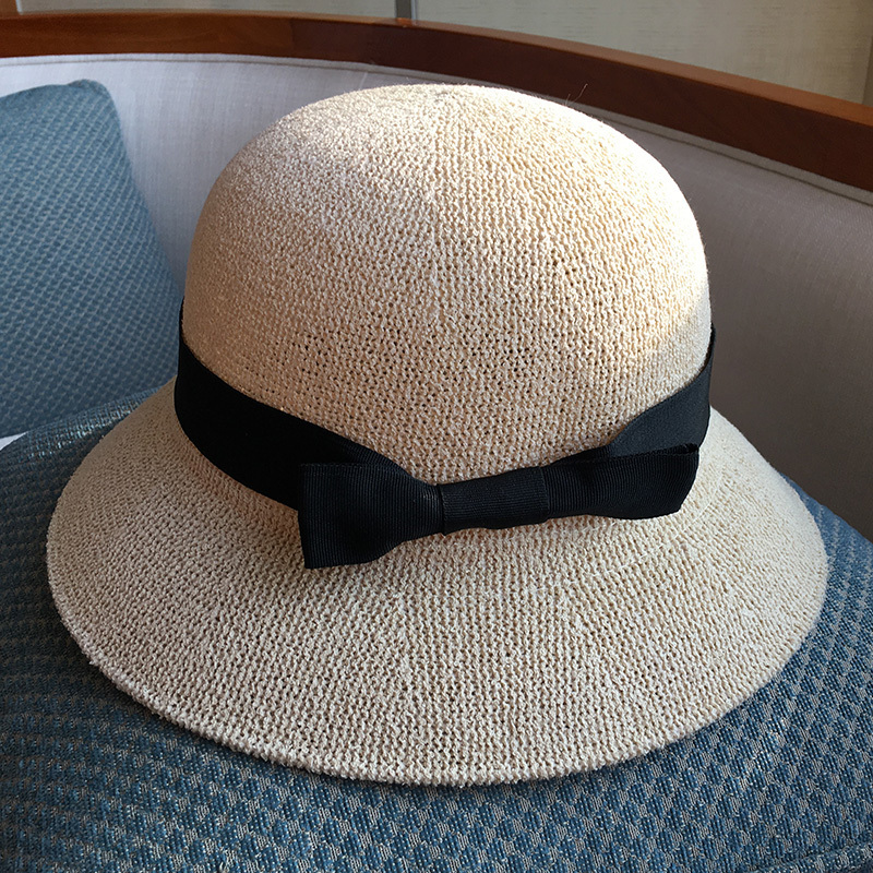 盛世尼曼江疏影同款帽子女夏天遮阳帽沙滩帽小清新草帽防晒海边编织渔夫帽 米黄色蝴蝶结盆帽---收藏加购下单送鸡蛋花